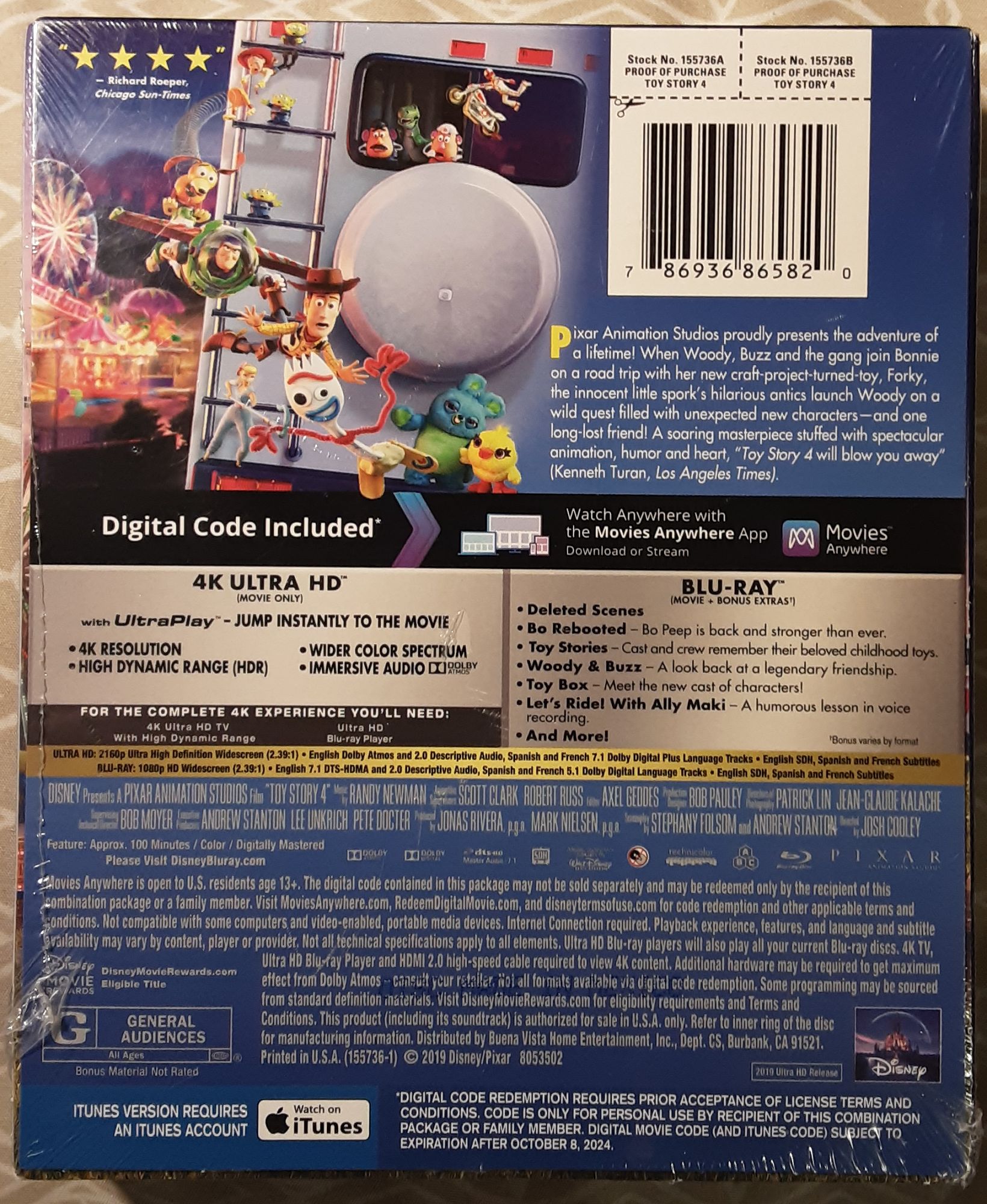 ====================================================================== Toy Story 4 (Target-Exclusive) 4K UHD + Blu-ray + Digital Code (Brand New, Factory-Sealed) Price: $15.00