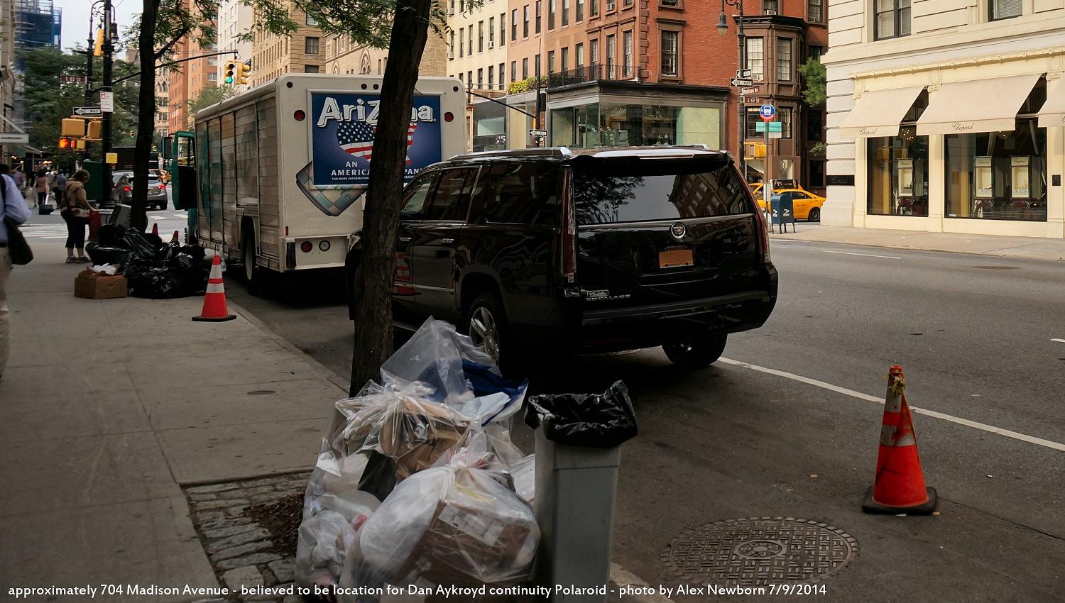 As a footnote, we believe that this continuity reference Polaroid for Bill's character was also taken at the Ecto-1 parking spot on Madison Avenue. You'll notice that he has the same yellow hose hanging from around his neck. However, we can't positively identify the "Rochelle" building in the background, so this one can't be confirmed.