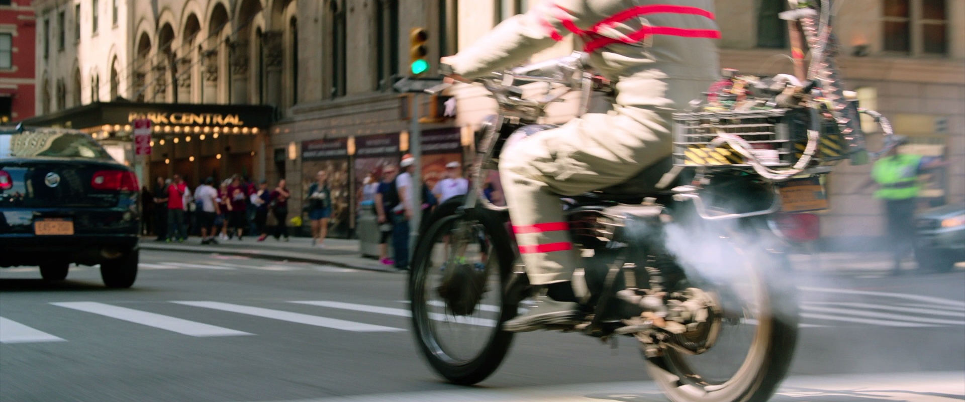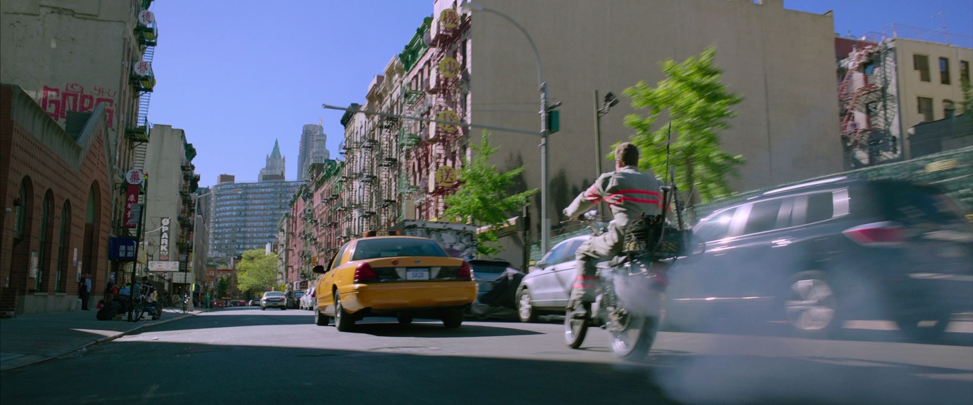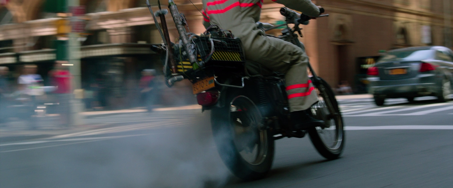 Rather than possessing someone in power, Rowan's spirit decides to posses the Ghostbusters; first Abby, then Kevin. Kevin rides away on his motorcycle, Ecto-2.