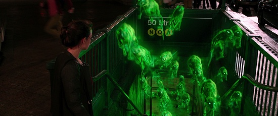 A pretty lady sees ghost rats coming out of the 50th Street subway entrance.