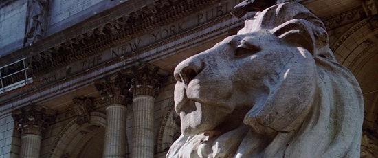 The movie opens up with an ominous look at the lions flanking the entrance to the New York Public Library.