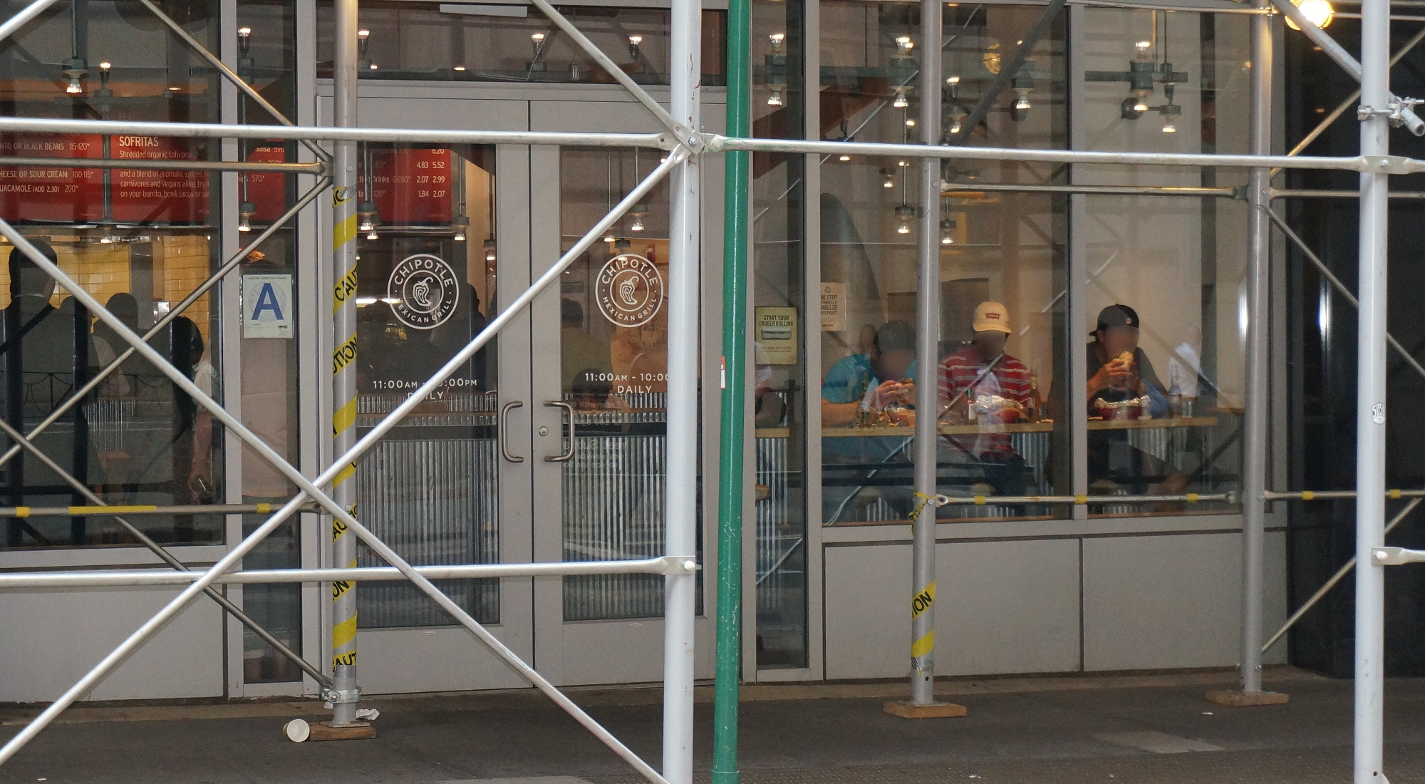 They're coming out of Record Explosion at 2 Broadway, just across the street from the right side of the U.S. Customs House, which as already mentioned, plays the museum. At one point, there were several Record Explosion stores throughout Manhattan, selling music and videos in all of the popular formats of the day. By the mid-2000s, all of the Record Explosion stores were out of business. The store in the corner spot at 2 Broadway is currently a Chipotle restaurant.