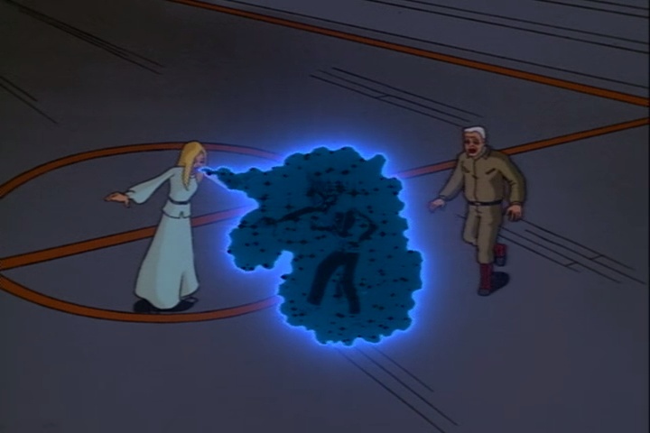 Each disc features the same menu with Fil Barlow promo art of the team. On the first disc, you can't make out the text "Extreme Ghostbusters" at the top because it's white on white. The menu text has a few spelling errors, but you can tell what's what, and next to each episode title is a small animated thumbnail. The Play arrow button at the bottom of each menu page is Play All, which has all episodes on one title back to back. While watching an episode, if you press the Disc Menu button on your remote, you'll go to a hidden episode menu where you can see chapter thumbnails. Each episode has five chapters, placed every five minutes.