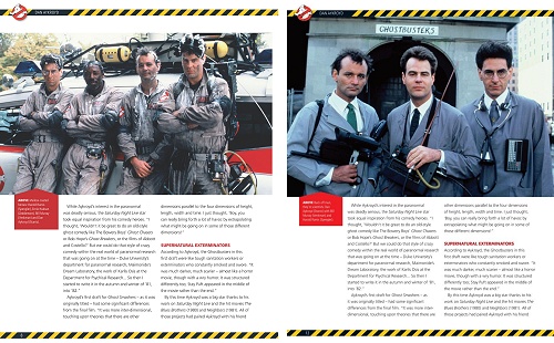 It should be noted that some articles are not 100% the same as their magazine counterparts. I mean, the text and the layout seems to be 100% the same, but some photos are different. Below is a page from the Dan Aykroyd article, which also appears in Ecto Mag #1 (pdf downloadable here). The magazine is on the left and the book is on the right.