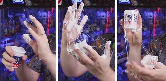 GHOSTBUSTERS MINI-PUFT SURPRISEBack in the 1980s, Kenner released little plastic canisters of Ecto Plasm, each containing a surprise mini-ghost inside. Hasbro decided to build upon the idea with the adorable Mini-Pufts from Ghostbusters: Afterlife. In this case, instead of slime, the canisters are filled with an INEDIBLE faux Marshmallow Fluff. Buried inside this "gooey compound" (as the retail box calls it) is a 1.5"-2" little Mini-Puft figure, though he's double-bagged to prevent unwanted pregnancy. No glove, no love, kids.