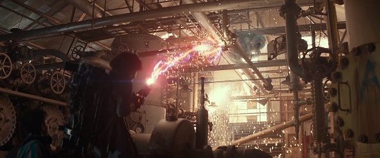 ...and I looked, as he opened the Sixth Seal." - Substitute teacher Gary Grooberson (a name revealed by Paul Rudd on The Graham Norton Show) opens a ghost trap, as seen in the "Reckless" film clip (aka "Jump-Starting a Ghost Trap"). We don't see the ghost pop out. Instead, we're shown the destruction of the Gozer's Temple set, that I assume is in the Shandor Mines somewhere.