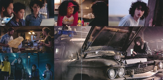 Rob Simonsen is huddled over the mixing console, lost in a puzzle. A musical riddle. He's looping the same stanza on repeat - a brassy fat tire blast of Gozerian doom that anyone would recognize from the 1984 score. Something's missing. A small detail in an overwhelming soundtrack that Simonsen has created with painstaking accuracy and emotion. A classically composed power score that could stand alongside the work of Williams, Horner, Silvestri, and of course the originator, Elmer Bernstein. In approaching Ghostbusters, Rob became an archeologist, studying the vast legacy of sheet music from Bernstein and digging up the mic plots for the '84 orchestral sessions. He auditioned tack pianos in various states of untuning. He recorded Ondes Martenot maestro Cynthia Millar at Abbey Road. Beyond the nostalgia, Simonsen created a work of music that crackles with each neutrona blast and swells as a broken family becomes one again. It's a creative tightrope that must be done in front of the largest audience and brightest spotlight. Any note out of place and it will be noticed. He makes it look easy. It really isn't. So, I understand why he's arched over the mixing board. But then he looks up and smiles. He turns to me and says "contrabassoon". A wind player unleashes a five-foot curling reed instrument that rumbles on the low end. Mics are placed and faders are raised. I close my eyes. For a moment, I'm seven years old again, watching Elmer with the orchestra.Pages 5 and 6 feature a collage of six stills from the movie.
