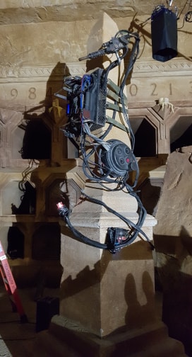 Now, my first thought was that the date physically etched on the wall was "2020" and that it was digitally changed to "2021" in the 16 months while the film was on hold. Then I found this photo taken by the Alberta Ghostbusters while they were on the set helping with the Proton Canons, and it clearly shows "2021" on the wall:
