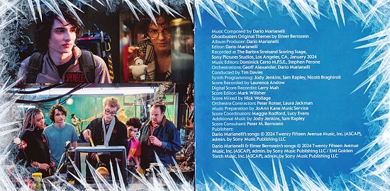 The Yamaha DX-7 was plugged straight into the board in the historic John Williams studio building on the Columbia Pictures lot one damp Saturday in January. As the first notes were struck, the instrument became a time machine that transported all of us lucky enough to be in the room straight back to 1984. It didn't hurt that the player was Peter Bernstein, the first film's orchestrator, and son of the late great Elmer Bernstein. Elmer's score for GHOSTBUSTERS ('84) swung for the fences. It's a brilliant and unorthodox score that elevated that film's tone and mythology where other comic film scores would have undercut or satirized.Pages 5 and 6 contain the names of all of the individual musicians.