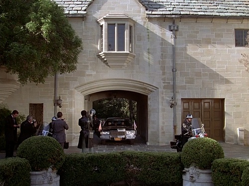 Rocky, Nancy, and everyone else leaves through that entrance, stopping just outside to have a quick chat. That same doorbell behind Nancy would be seen in Ghostbusters II, as per the previously-linked Shot on Site article.