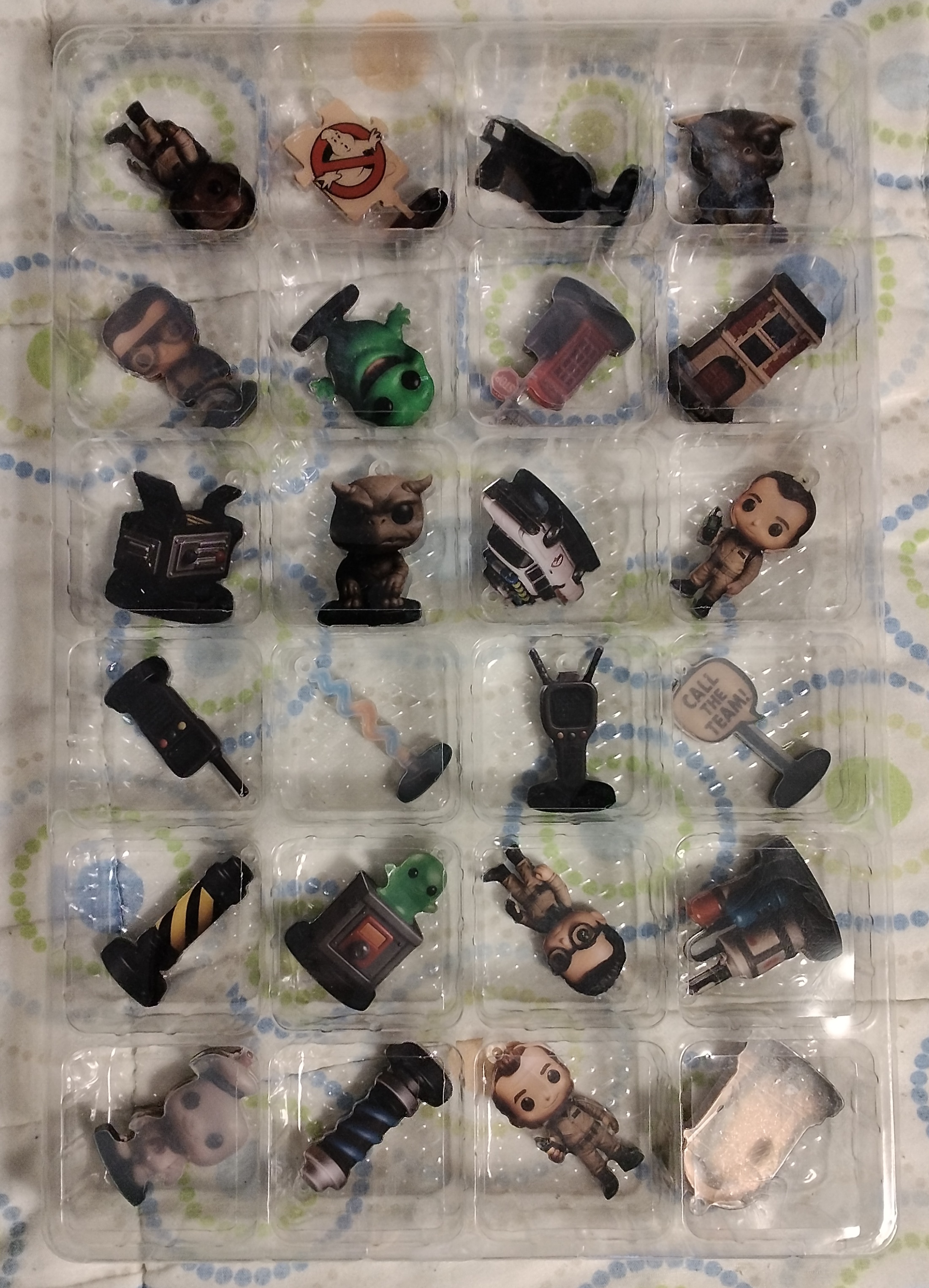 Here is the whole tray of "24 collectible figures". The plastic tray with 24 compartments has a second tray sitting glued on top.