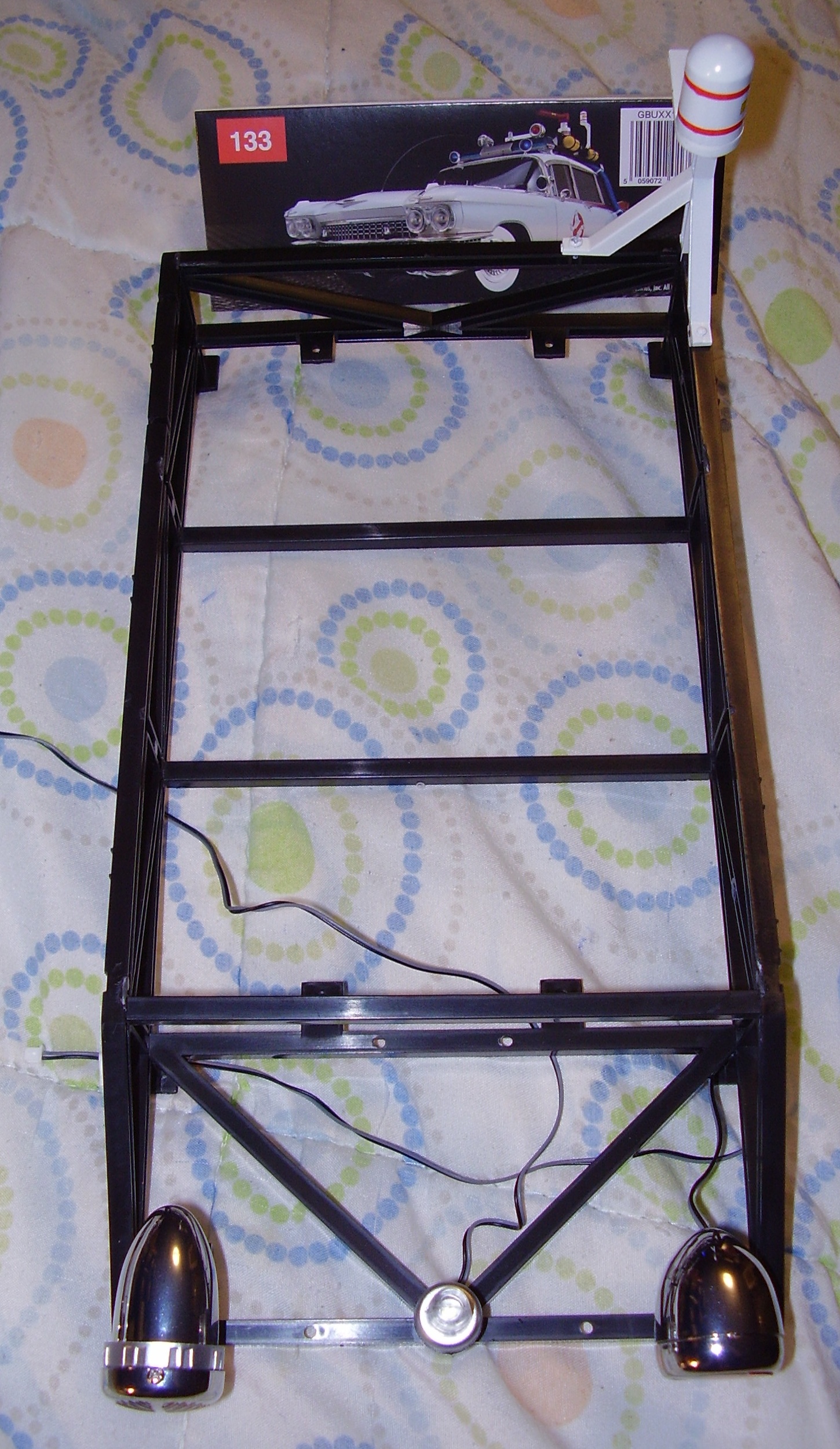 The Eaglemoss/Fanhome car is 1:8 scale, which makes it HUGE! The final length, width, height, and weight is 31" long, 10" wide, 13" tall, and it weighs about 30 lbs. Since the Blitzway Ecto-1 is in the larger 1:6 scale, it is even heavier. Blitzway's site gives the dimensions in millimeters and the weight in kilograms, and when converted, I get 45" long, 17" wide, 21" tall, and it weighs about 43 lbs. (assuming weight is the same as their Afterlife Ecto-1). DAMN!