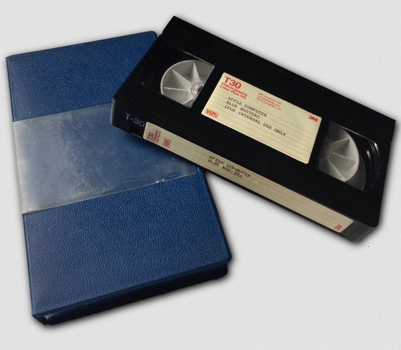 A few years later, Apple produced an album on cassette tape titled "Apple Boogie", consisting of eight tracks (including an extended 6-minute version of "Blue Busters") that, I assume, they used at various events in the 1980s. The cassette appears to have been handed out to attendees at another Apple sales conference in 1987. (source) The album was uploaded to an Apple-centric website in South Africa, though you can click on the album cover below to download all tracks, and my fixed copies of the artwork scans, in a 35MB zip file. Below that is the embedded "Blues Busters" MP3.