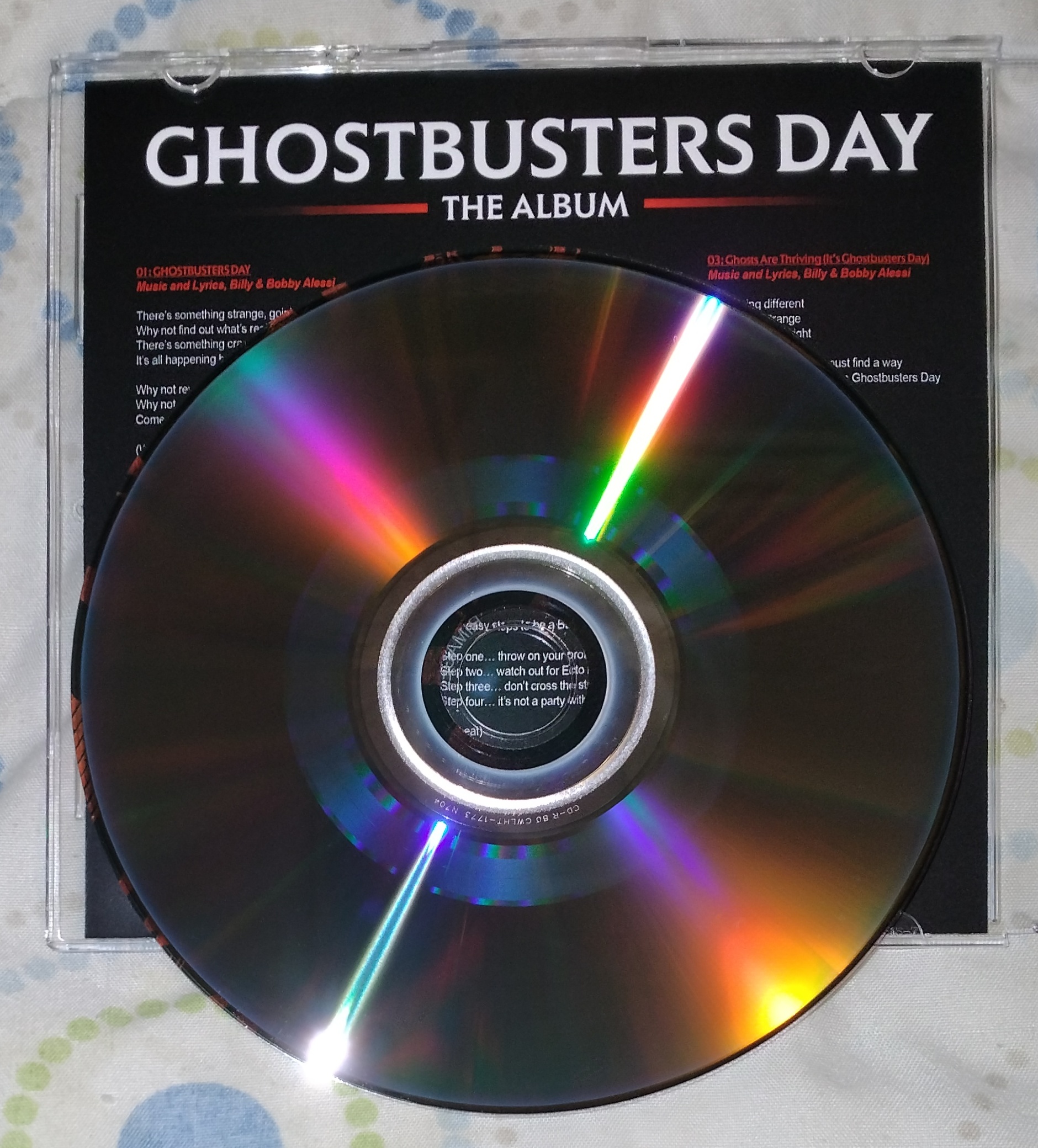 There isn't anything more to this. It's a CD-R with beautiful disc and front artwork, and only three songs that, to my knowledge, are not available elsewhere. It cost me a total of $22.85 ($10.00 + $12.85 flat-rate Priority Mail shipping), which is a bit much for three songs. That's $7.61 per song! The reason for the high price is that the Buffalo Ghostbusters' online store only offers one single shipping option. I would have preferred paying half the shipping cost for Media Mail, but they set up their store with a "one price fits all" shipping option, so it can be used for the CD, patches, coins, and whatever else. So bear in mind the high shipping cost, should you want the CD while copies remain available. (Note: International shipping is likely even highly, so inquire with the Buffalo Ghostbusters if you live outside of the United States.)
