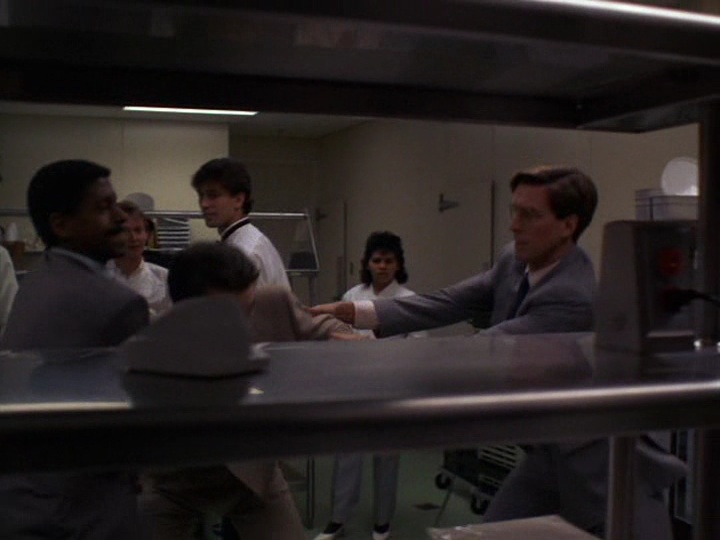 About eight minutes into this generically-titled television movie starring Jason Bateman, Joseph Kellogg (Tom Skeritt) has a dinner meeting at Val's with a man from the Justice department (John Glover) posing as a prospective employer. They dine in the main eating area, sitting not far from where Dana and Peter sat in Ghostbusters II. The exterior is shown a few times, which is confirmed by the brick building with vents across the street. The Feds escort Mr. Kellogg from the restaurant when his boss, whom they want him to testify against, enters the place. They head out through the kitchen and out the back door to another Fed in a taxi waiting in the back alley.
