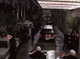 - The Fifth Street entrance that the Ghostbusters went though, goes into a very long corridor (called the "Main Galeria" on the hotel map) that stretches across the entire building all the way to a similar-looking entrance/exit at the other side. This other entrance/exit is in a private alleyway that runs perpendicular to S. Grand Ave. and S. Olive St. This alleyway entrance is seen in many films including Dave (1993), Junior (1994), and Clockstoppers (2002); not to mention music videos and other media. Although the alleyway entrance was not used in Ghostbusters, multimedia from films and other media that DO use it will appear below on this page, so I felt that it was worth mentioning it and giving the Google Maps Street View links for it at the top of this page. Some differences between the Fifth Street entrance and the alleyway entrance are: Fifth street is on an angle, the alleyway is flat; Fifth street entrance has a wide sidewalk, the alleyway entrance has a narrow sidewalk. Also, when you watch films/music videos/etc. that use the alleyway entrance, you'll notice that everything is rather cramped or closed in.