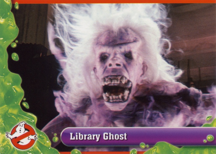 The set of six cards are the standard 3.5" x 2.5" horizontal size, and are printed on good cardstock with a glossy finish on both sides. They're numbered by "case number", which is the order the ghosts are seen in the film. The last card of the Ghostbusters Team is unnumbered, but it could be considered card #6 (it would have been nice if they didn't put the part number on the front of this card). Overall, a very nice little set, which makes you wish that someone would put out a full set of Ghostbusters movie cards. The 25th anniverary would have been a great time to put out a set, and maybe a Ghostbusters movie adaptation comic book, too. This is now the second official mini-set of Ghostbusters cards ever made. The first is a few cards and a sticker that were part of Topps' "Fright Flicks" horror/humor set in 1988. Only Ghostbusters II got a full card set and a comic book adaptation.