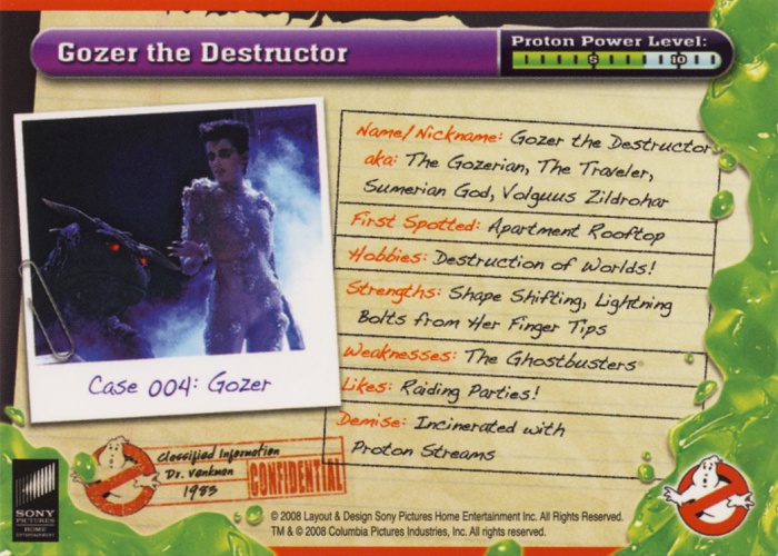 On October 6, 2009, the complete Ghostbusters 1& 2 2005 Double Feature Gift Set (two DVDs plus movie scrapbook) was repackaged as the "Ghostbusters 1 & 2 Limited Edition Gift Set", this time bundled with a Stay Puft Marshmallow Man statue, a set of six trading cards, a small tub of slime, and a $25 Sideshow Collectibles gift card. Below are some details about this box set. Details about the original Double Feature Gift Set, including scans of the packaging, movie scrapbook, and two movie DVDs, can be found on the Ghostbusters 2005 DVD page. It should be noted that this box set was originally slated for an October 2008 release, but that got pushed back a year for some unknown reason. This is why all of the copyright data on every item in the box (except for the DVD set) says "2008".