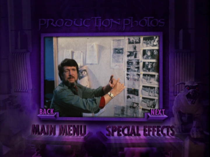 Below are some comparisons between the still images on the 1999 and 2005 DVD releases of "Ghostbusters". The reason for the comparisons is to illustrate that all still images on the 2005 DVD have had a Photoshop "Oil Painting" filter applied to them, and look absolutely horrible as a result. All of the images on the 2005 DVD can be found in their original unaltered form on the 1999 DVD, except for three Terror Dog photos, which are new to the 2005 DVD. Though it should be noted that the 2005 DVD is missing one logo drawing.