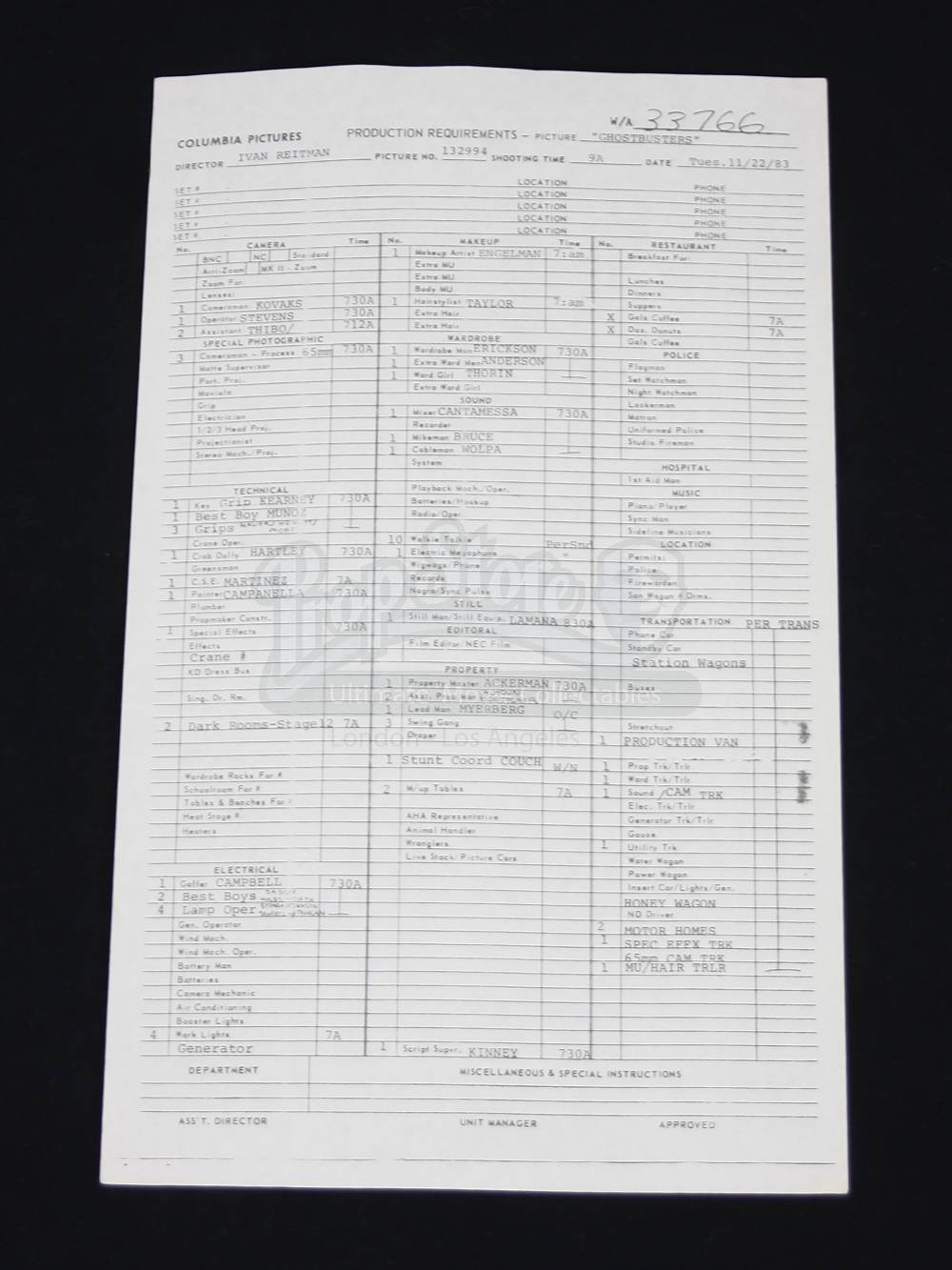 Sadly, I do not have scans of call sheets for the entire production. Only when they show up for auction can I grab images of them; from the auction listings because they are too expensive for me to actually own. If you have any call sheet scans you'd like to contribute, please e-mail me. It is my hope that one day we can have a complete set of call sheets here.