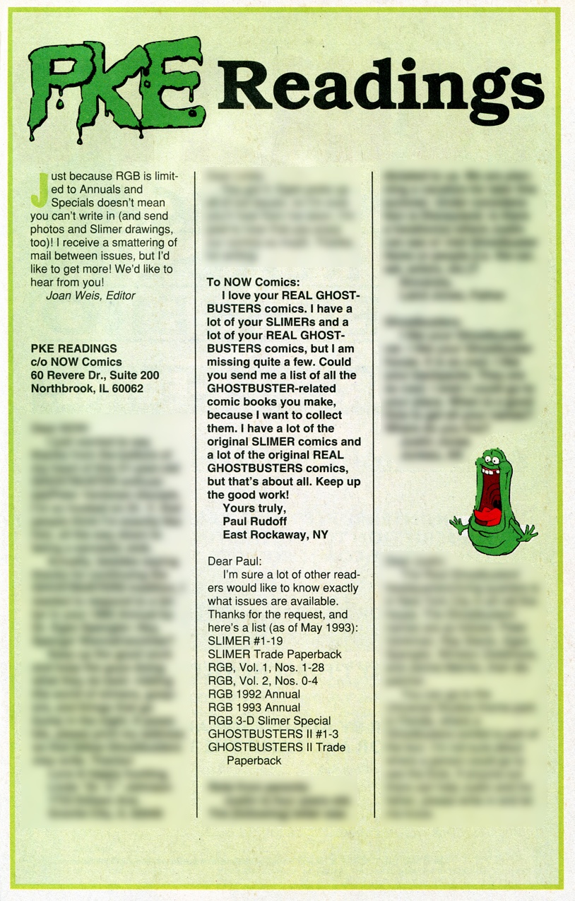 In The Real Ghostbusters 3-D Slimer Special (July 1993, NOW Comics), a letter I wrote to the editor was published. Here is that letter.