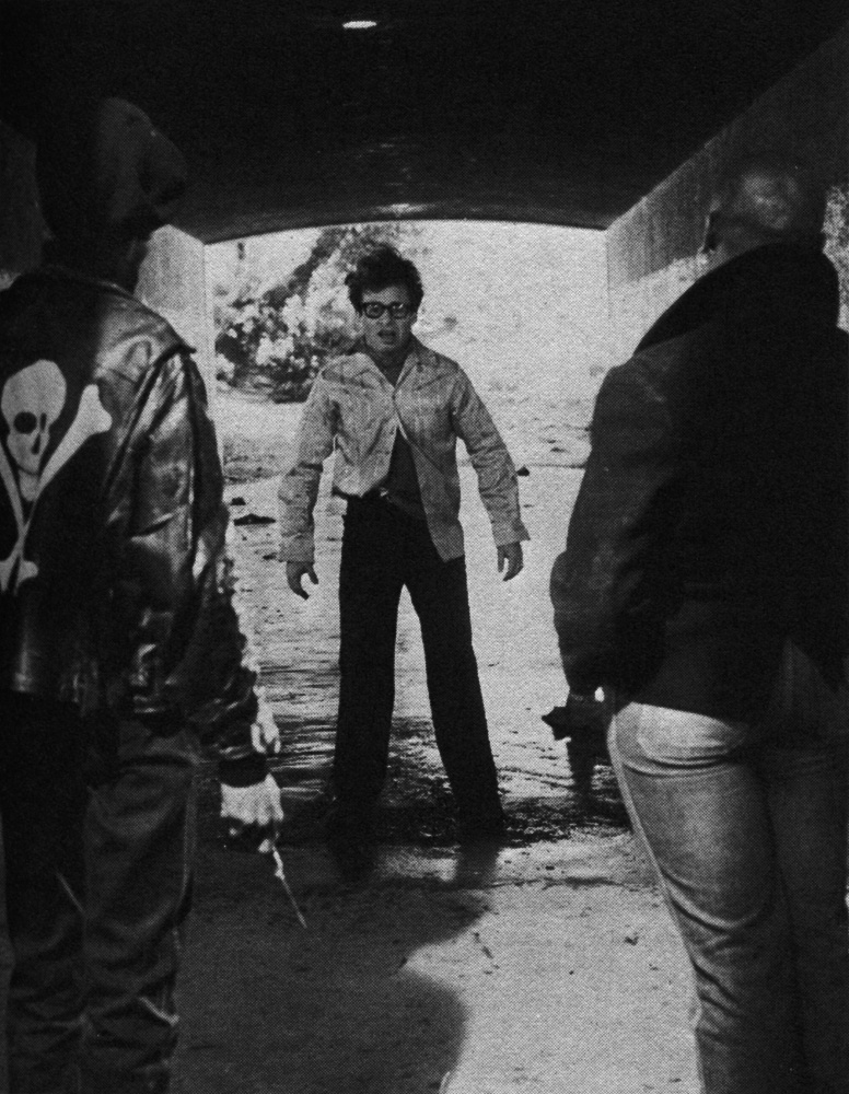 A gang of MUGGERS is smoking something in a weird pipelike device. One of them sees the approaching silhouette of Louis and hisses to his cohorts. The others all look and slowly begin to fan out across the width of the tunnel.