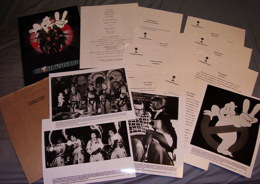 A press kit is a pre-packaged set of promotional materials for a movie distributed to members of the media for promotional use. All movie studios put together press kits for their major motion pictures releases, and Ghostbusters II is no exception. I own the press kit for the film and it is my pleasure to be able to share it with you, exclusively on Spook Central. The Ghostbusters II press kit consists of nine stapled documents and a few numbered 8x10 b&w glossy photographs.