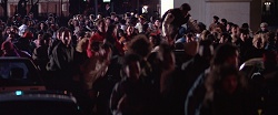 I should note that Sony cropped out the sides of the stock footage to put it into a 16:9 ratio for their website. The actual stock footage is in the movie's original 2.40:1 aspect ratio. As you can see from the frame comparison below the video clip (movie first, stock footage second), the video file from Sony's site doesn't show the sides of the frame that Mars Attacks! does.