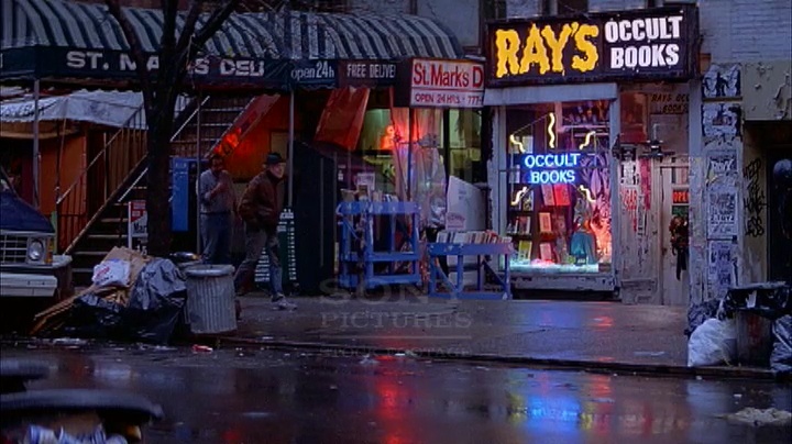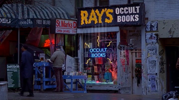 6142-020 Storefront Medium angle of storefront of "Ray's Occult Books" in alley. See pedestrians, some cars and homeless people pass by. Neg cut. 6142-027 Storefront Medium angle of storefront of "Ray's Occult Books" in alley. See pedestrians, some cars and homeless people pass by. 6143-027 Storefront Medium angle of "Ray's Occult Books" store on city street. See people walking by on sidewalk in foreground. See trash bag in street. See taxi pull up and stop in street in front of store. 6153-044 Storefront Medium angle of bookstore storefront or shop with neon sign that reads "Occult Books," and another sign that reads "Ray's Occult Books." Awning to left reads "St Marks DSU." Cars drive by on street from left to right. 6155-047 Storefront Medium angle of bookstore storefront or shop with neon sign that reads "Occult Books," and another sign that reads "Ray's Occult Books." Awning to left reads "St Marks DSU." Cars drive by on street from left to right. Used In These Other Productions: • Monk: "Mr. Monk and the Voodoo Curse" (2009) (see below). |