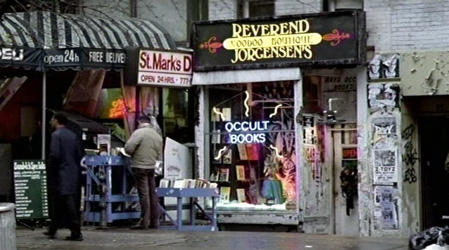 A series of deaths have one thing in common: voodoo dolls illustrating the unique way in which the person died were found at each victim's house. The dolls were all purchased at one local San Francisco shop: Reverend Jorgensen's Voodoo Boutique. The police pay the good Reverend a visit and we are treated to a rather familiar exterior shot. Look in the dark white area above the door and right below the digitally-added Voodoo Boutique sign, and you'll see the text "Rays Occ Books" (the "ult" in "occult" is obscured by the side of the entrance). (This episode is available in the Season 8 DVD Set and, of course, in the Complete Series DVD set; or you can buy/stream the individual episode.