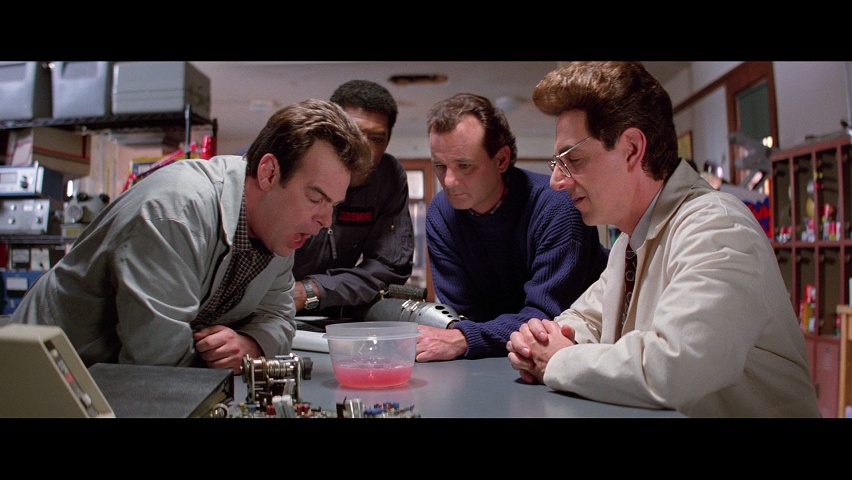#7: Mood Slime - This shot of Ray yelling at the tub of slime is a good example of the "dark haze" that appears over the image on the 2019 Blu-ray. Notice how the top half of the image is unusually dark?