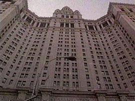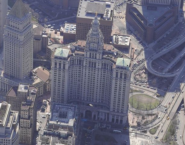 In actuality, the building is the Manhattan Municipal Building. Built between 1913 and 1918, it houses many of the city government's agencies, including the Department of Citywide Administrative Services, the Comptroller's office, the Borough President's office, the City Clerk's office, WNYC radio, NYC TV Network and the Department of Finance.