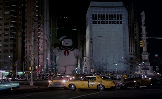 - In the second movie Ecto-1 turns off of 2 Columbus Circle onto Broadway - though the way the footage was shot, all of the background details are best visible when standing a block up, between W. 58th St. & W. 57th St. - which is the street Mr. Stay Puft came out of when he made his grand appearance in the first movie.