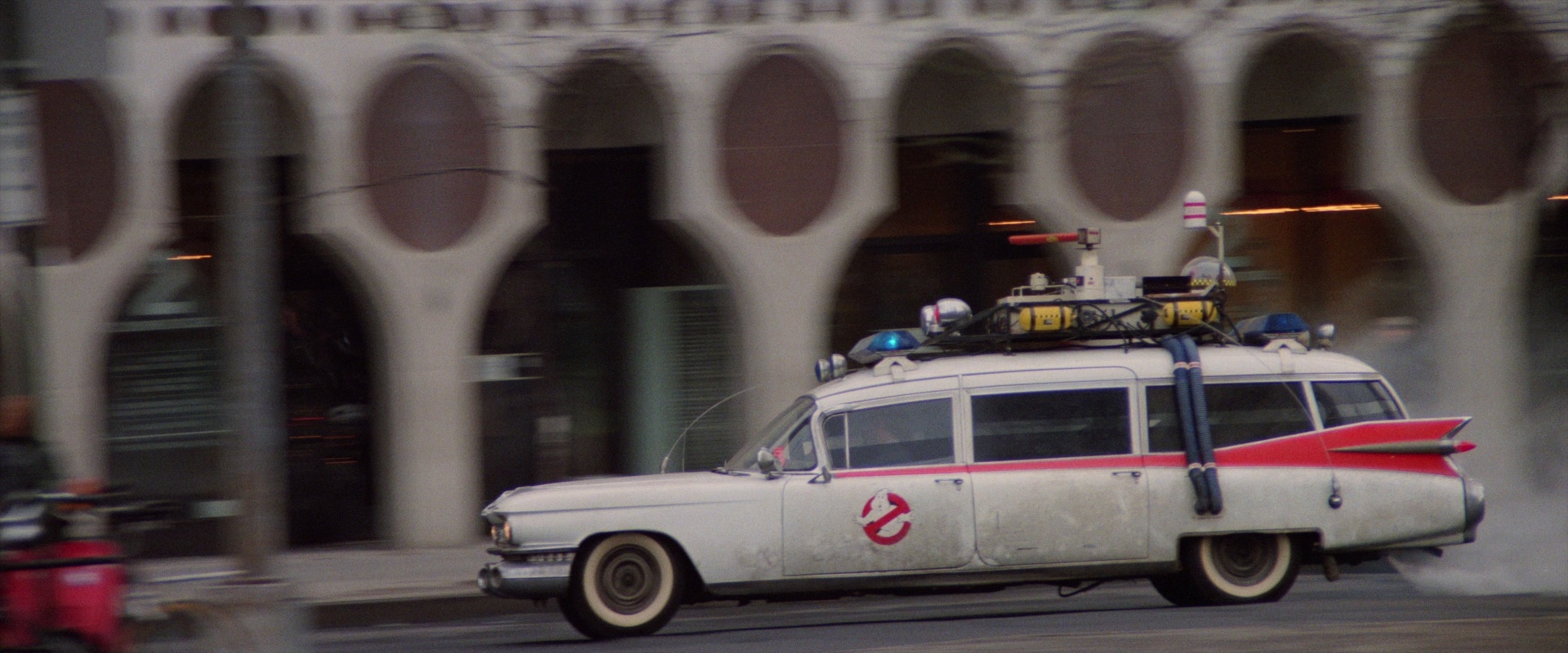 - Behold the magic of editing! In the second movie, Ecto-1 is seen driving past the St. Moritz Hotel on Central Park South before passing by 2 Columbus Circle and turning onto Broadway. 2 Columbus Circle is actually 3 blocks away from the hotel on Central Park South...in the OPPOSITE direction. (text written by Chris Buchner)