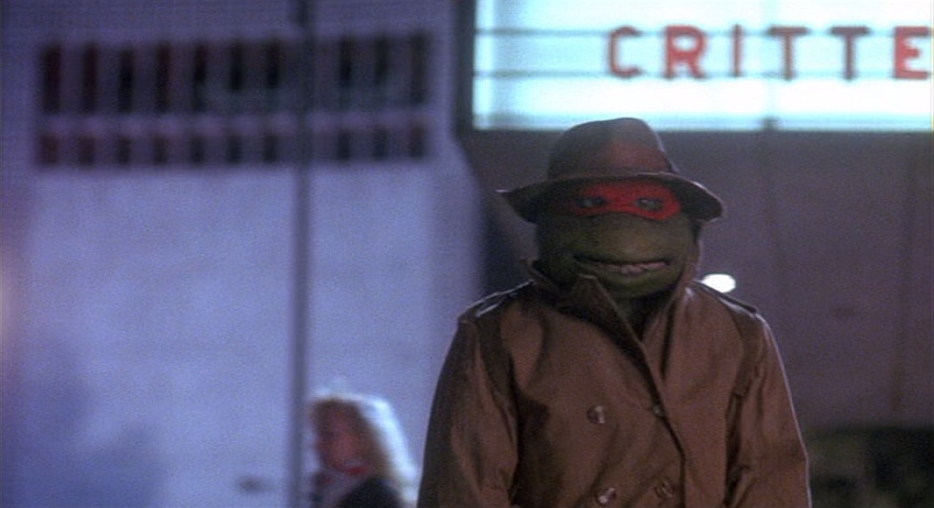 Raphael leaves a theater showing Critters near Columbus Circle. He chases some goons into Central Park, where he meets Casey Jones.