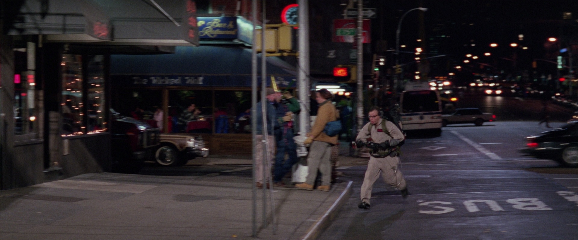 - Both the diner that Ecto-1A passes and Louis' bus stop are on the same road (First Avenue), a block apart from each other. In fact, Ecto-1A is seen driving down First Ave., past where the bus stop would be, in order then turn onto E. 76th St. where the diner sits on the corner.