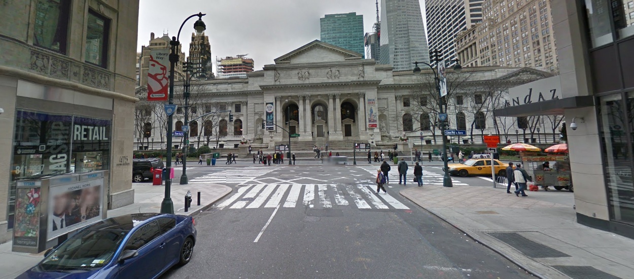 New York Public Library Stephen A. Schwarzman Building Fifth Avenue at 42nd Street New York, NY 10018 * Google Maps street view |