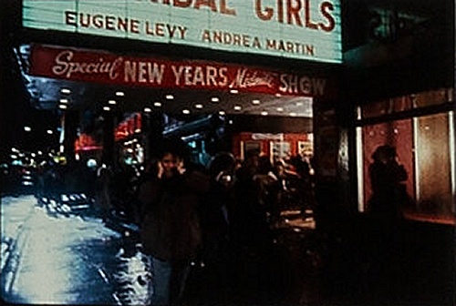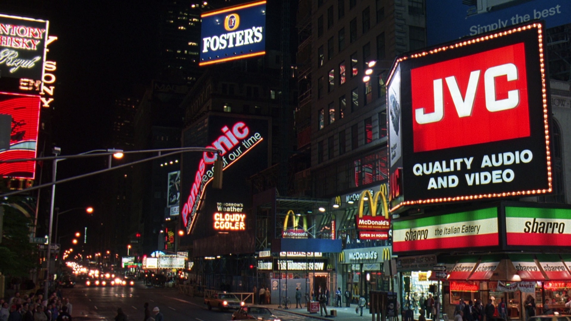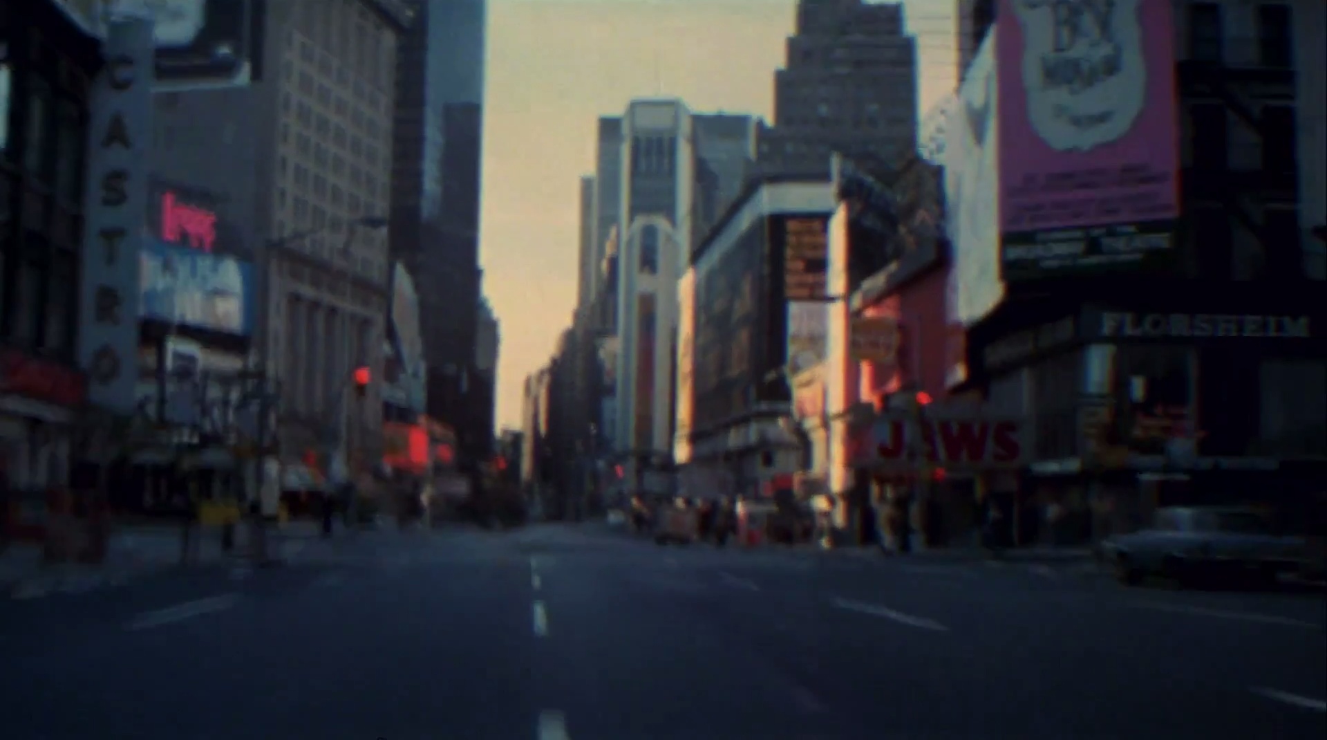 Early in the movie, crowds have gathered in Times Square to celebrate the passing comet. The shot under composer's David Richard Campbell credit shows the crowds around the Movieland Theater, which was showing the Burt Reynolds / Julie Andrews film The Man Who Loved Women at the time.