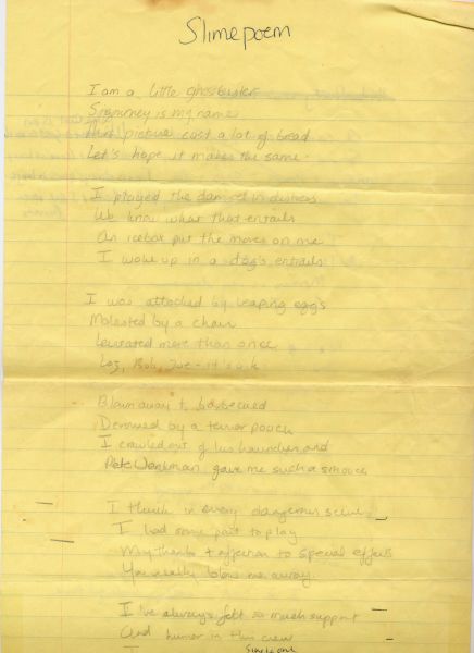 Film > Ghostbusters > Sigourney Weaver's "Slime Poem"