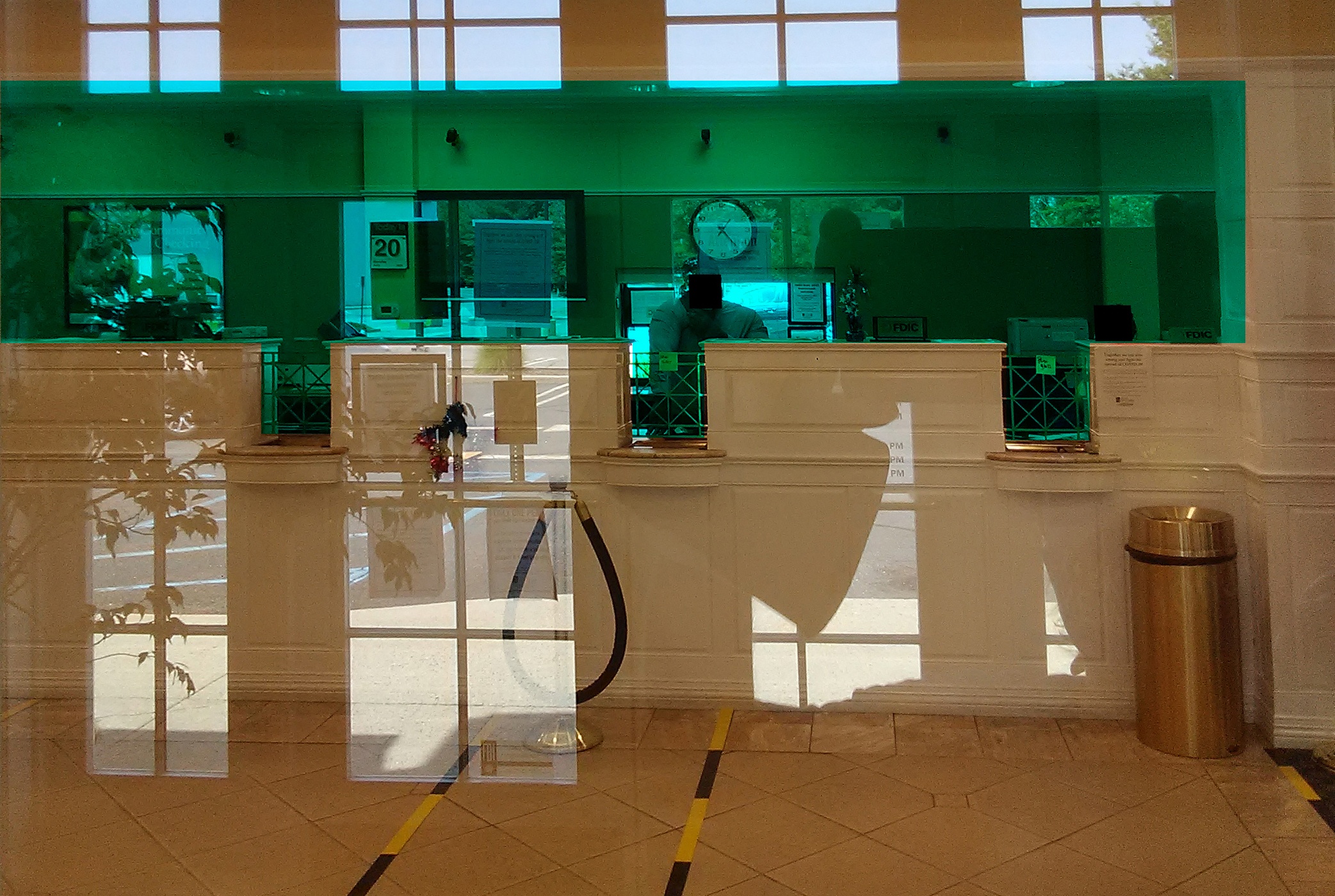 You can't tell me that knocking out walls and building new teller structures is cheaper than one HUGE piece of plexiglass added to the existing teller structures. And that's putting aside the fact that using the lobby area allows for proper social distancing without asking customers to stand outside.
