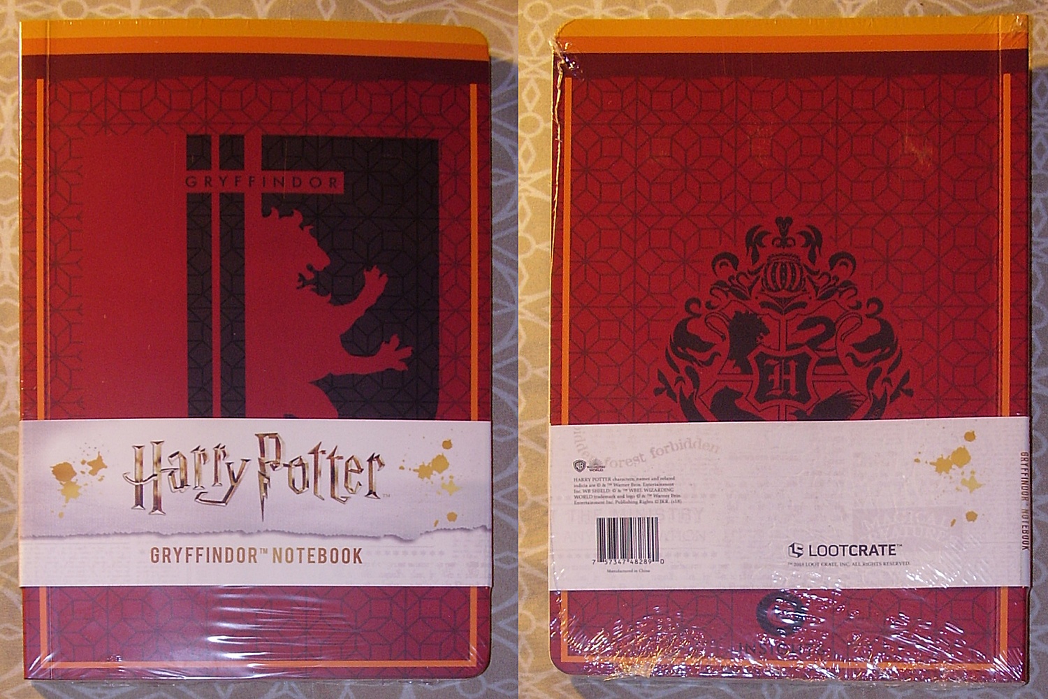 Harry Potter Gryffindor Notebook - A 5.25" x 8" book with a 2018 copyright date sealed in plastic. The blood red cover has the silhouette of a griffin, while the Gryffindor crest is on the back.