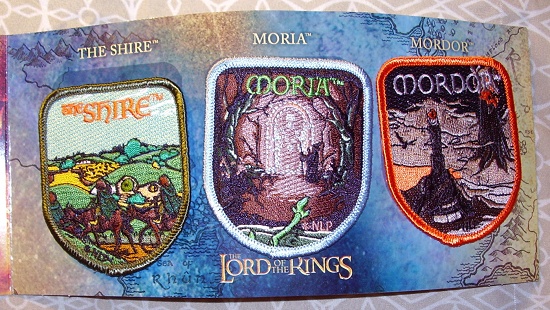 The Lord of the Rings 3-Patch Set - Each patch is 2.5"x3" depicting three locations from the fantasy series: The Shire, Moria, and Mordor. Made by Loot Crate in 2019.