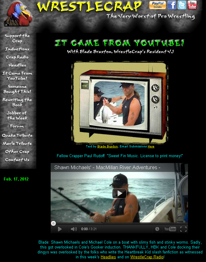 Wrestlecrap.com, the Internet's premiere wrestling humor site, has chronicled the worst in professional wrestling since 2000 (which still makes it younger than Spook Central). Regular visitors to the site and its forum are called Crappers, and I'm proud to admit that I'm a Crapper. I even own all three Wrestlecrap books. This should all come as no surprise considering that I've written about wrestling on Spook Central and have a category dedicated to it here on The Corner Penthouse. Over the years, I have made many submissions to the site. Read on to find out more about them...