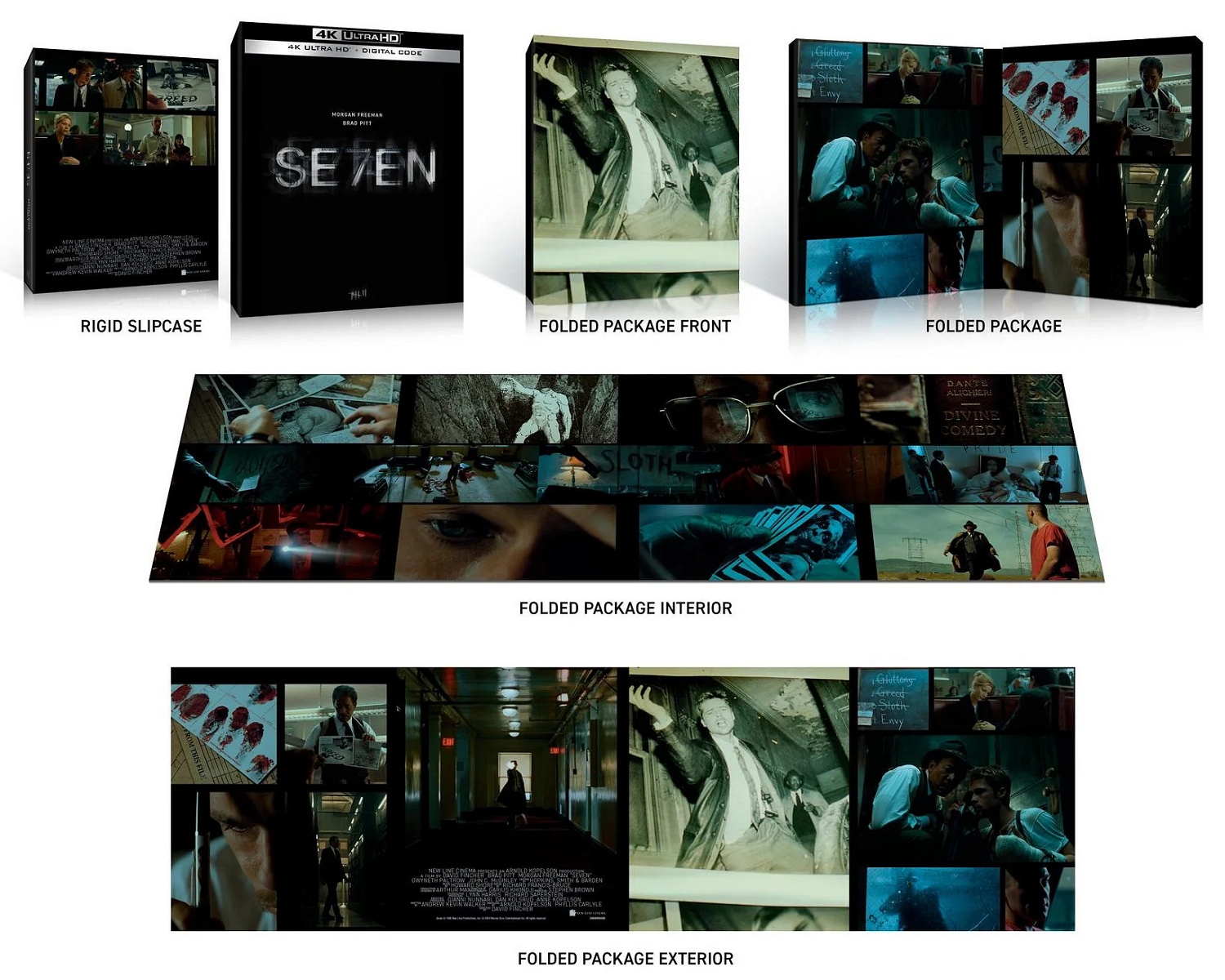 Seven (aka Se7en) (1995) is available on 4K UHD, Blu-ray, and 2-Disc Platinum Series DVD. Were it not for the crappy packaging, I would highly recommend the 4K UHD release. I enjoyed the first (this was actually my first time seeing it), though I felt a bit underwhelmed with it. I think the film's status hyped it up a bit too much.