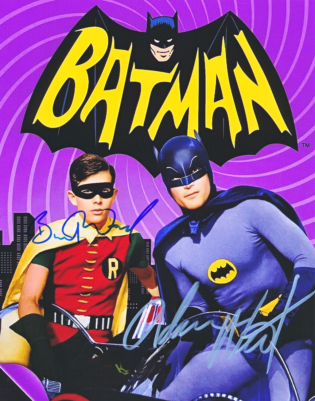 First, let's look at the dual-signed Adam West and Burt Ward photo. Although Adam West died in 2017, his estate still has a store section on his official website which lists some autographed items, including a $450 photo (on a plaque) signed by both Adam and Burt.