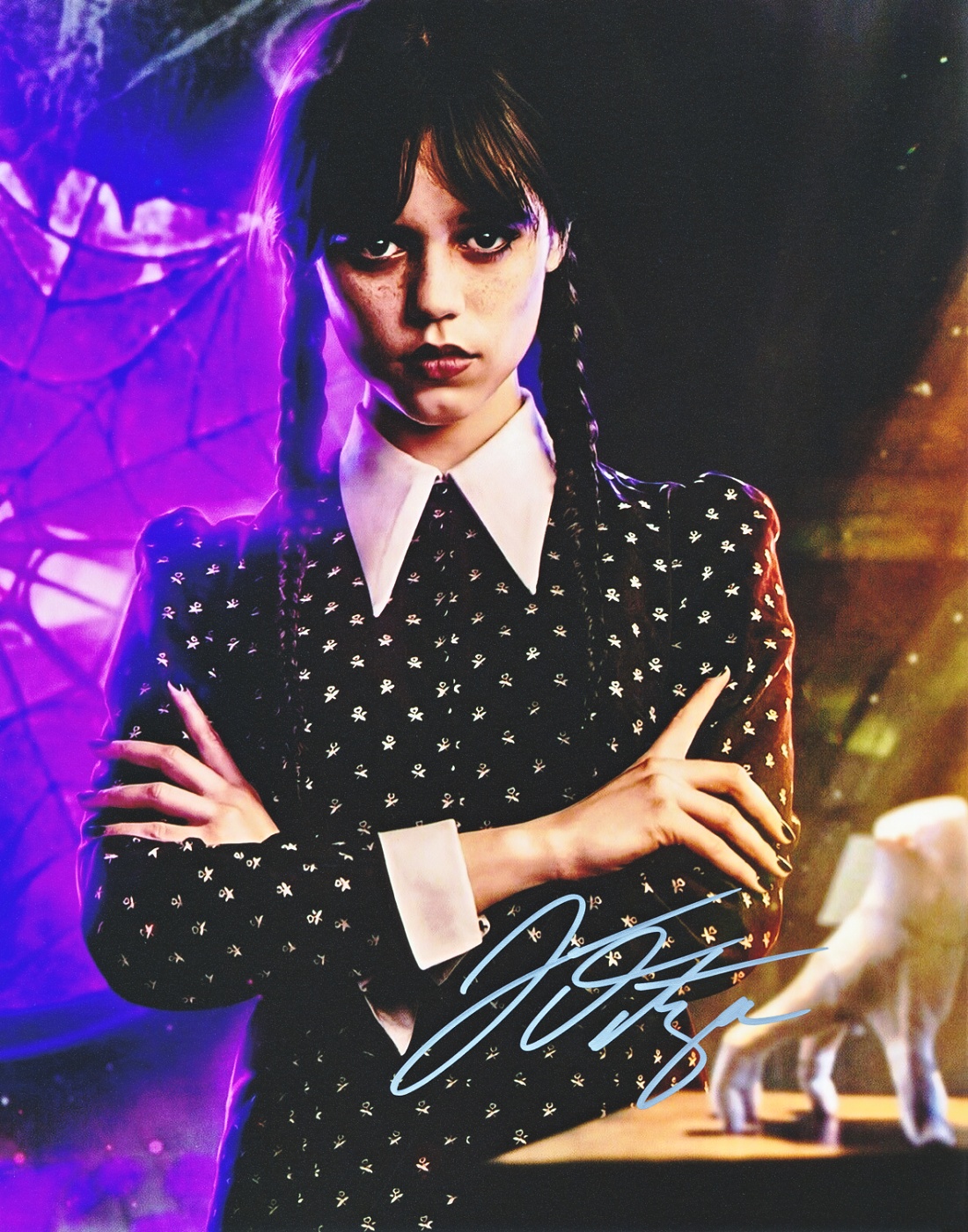 Jenna Ortega isn't listed at SWAU, so finding (what I hope to be) a legitimate autograph of hers is a little tricky. I found only a few that were authenticated by JSA. One was listed by eBay seller "ronscolt1911" for $800, and the others are on Zobie for $650 and up. (I know nothing about Zobie, but they look similar to SWAU).