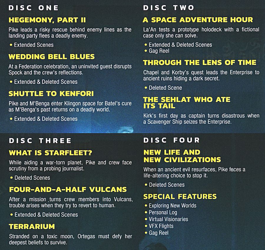 All of the content listed below can be found on the Blu-ray discs. In lieu of typing up a list, I will just place a scan of the episodes & extras list that appears inside the case. Click on it for a readable enlargement.